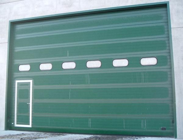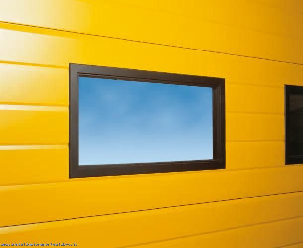 I portoni sono strutturati a doghe orizzontali in lamiera goffrata sp.5/10. incernierate tra loro.